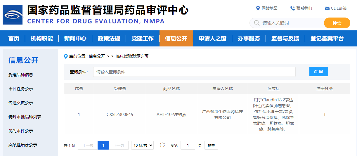 近日,廣西鷺港生物醫藥科技有限公司(以下簡稱“鷺港生物”)研發的AHT-102注射液通過國家藥品監督管理局臨床默示許可(受理號:CXSL2300845)。AHT-102注射液是針對熱門腫瘤靶點Claudin18.2的生物制品創新藥,主要適應癥為胃癌和胰腺癌。
