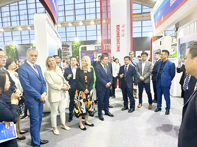 5月21日,塞爾維亞第66屆國際工藝和技術(shù)成果博覽會在貝爾格萊德博覽館隆重開幕,來自人工智能、生物醫(yī)藥等領(lǐng)域的22家中國科創(chuàng)代表企業(yè)表現(xiàn)搶眼,為中國科創(chuàng)力量增添亮色。塞爾維亞國民議會議長布爾納比奇,科學、技術(shù)發(fā)展和創(chuàng)新部長貝戈維奇,信息和電信部長里斯蒂奇,中國科學技術(shù)部副部長陳家昌等出席開幕式并致辭