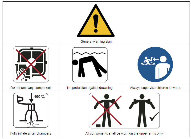 警告標(biāo)簽應(yīng)當(dāng)印制或壓制在產(chǎn)品上,并在使用及穿戴中清晰可見。禁止游泳器具的警告標(biāo)簽凸出高于該產(chǎn)品的平均表面。
