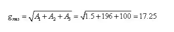 利用加速度總均方根值公式計(jì)算得: