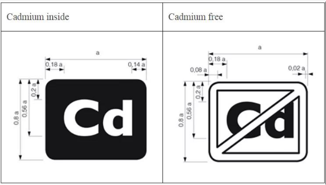 若其均質材料中鎘(Cd)的濃度未超過歐盟RoHS指令2011/65/EU規定的限值(0.01%) ,則應使用“Cadmium free”標識。