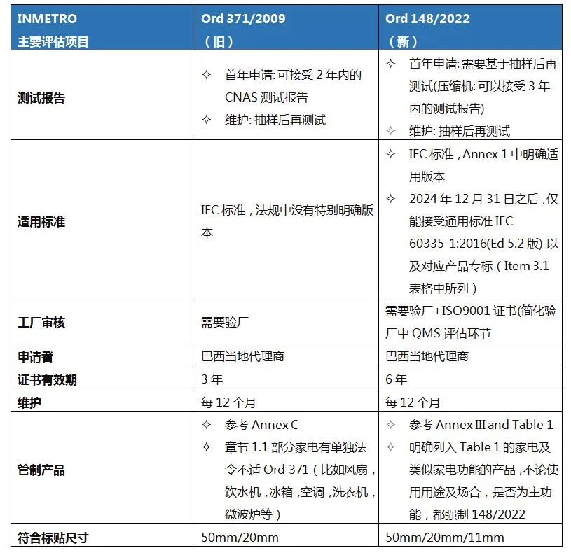 巴西國家計量、標準化和工業質量協會INMETRO于2022年3月28日發布Ordinance 148/2022, 針對家用電器及類似產品的符合評估流程及相關要求提供了詳細法規依據,取代原家電主標準Ordinance 371/2009。